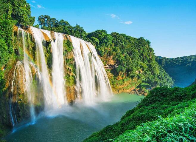 前往亞洲最大瀑布——【黃果樹瀑布】(電瓶車50元/人已含,不含黃果樹扶梯單程30元/人,往返50元/人)抵達黃果樹瀑布景區門口用午餐后進入景區游覽巨大瀑崖上轟然墜入十七米深的犀牛灘中,聲如巨雷,山鳴谷應,氣度恢弘,氣象萬千,攝人心魄。作為世界上唯一可以從上、下、前、后、左、右六個方位觀賞的瀑布,最特別的角度就是瀑布后邊的那個水簾洞,洞窗外有塊平臺,您可以站在此處與瀑布來個近距離接觸。如果幸運的話在這里還可以看到彩虹交織的瀑布。這里是85版《西游記》的主要取景地,除了水簾洞外,片尾曲一開始師徒四人走過的陡坡塘瀑布、位于天星橋景區的高老莊都能讓您在腦海瞬間再現電視場景。游玩結束前往晴隆入住酒店休息!