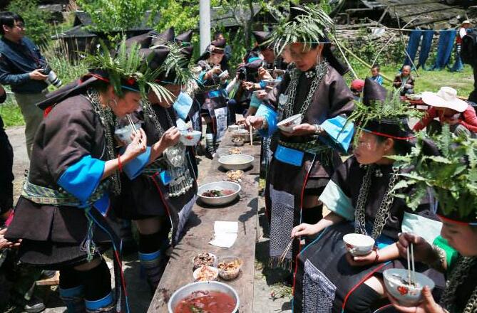 早餐后乘車出發前往【朗德上寨】游覽一個有百戶人家的苗族村寨。郎德上寨系苗語“能兌昂糾”的意譯,“能兌”即歐兌河下游之意,村以河名,“昂糾”即上寨,郎德上寨因屬郎德地片上方,故名。寨內苗民的服飾以長裙為特征,所以又稱為“長裙苗”。在這里除了可以欣賞到苗族獨有的木吊腳樓建筑外,還可以欣賞到寨民表演的攔路酒歌、盛裝苗舞、蘆笙舞、八抬蘆笙舞等等節目。郎德鎮具有著得天獨厚的民族旅游資源,鎮內有享譽海內外的“中國民間歌舞藝術之鄉”、“全國百座露天博物館”和“蘆笙之鄉”。朗德上寨古建筑群被列為我國第五批重點文物保護單位。