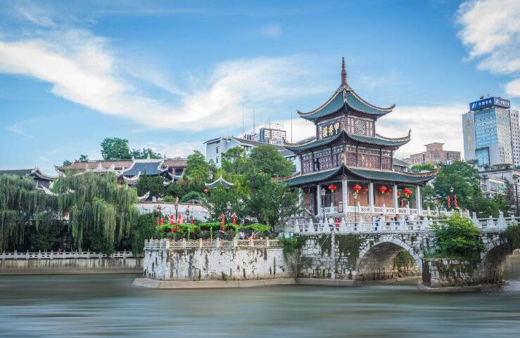 聊城適時乘機赴貴州(參考航班金鵬Y87544(16:50/213:05)),接站后送客人入住酒店。(當天根據航班時間,若時間尚早可游覽有天下第一樓美譽的【甲秀樓】,當天客人可以自行品嘗貴州特色小吃花溪牛肉粉,腸旺面,絲娃娃,留一手烤魚,戀愛豆腐果,烙鍋等。