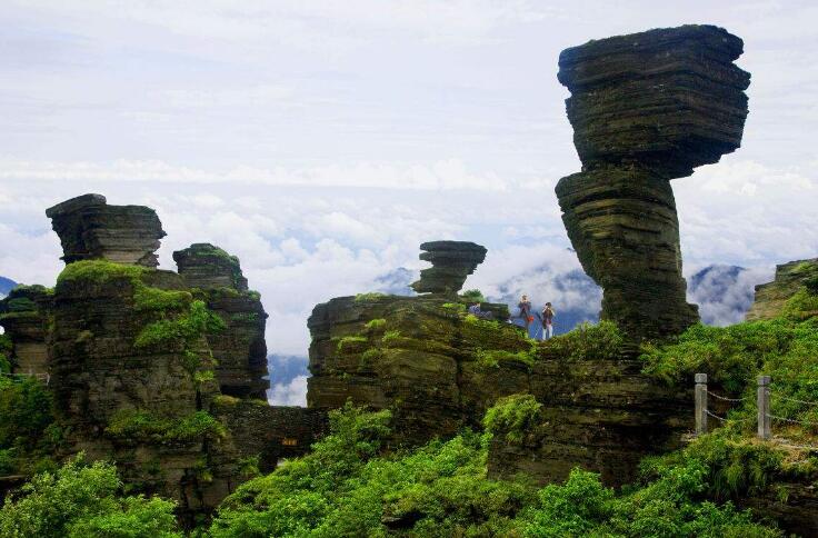早餐后看看古城林立的馬頭墻,敦厚踏實的房屋,穿城而過的“S”型舞陽河上游弋著幾條小船。中餐后我們離開鎮遠前往【梵凈山】,梵凈山國家級自然保護區、國際生物圈成員、亞熱帶最完整的生物體系,棲息著黔金絲猴、珙桐、紫薇等珍稀動植物;是黃河以南地區10多億年古老的地質臺地;是天下眾名岳之宗佛教圣地、全國五大佛教名山之彌勒菩薩道場。每個人心中都有這樣一個夢,離開喧囂的城市,去遠方,聽聽蝴蝶與野花的對吟,猜猜樹葉飄墜的心事,或者什么都不想,只是呼吸純凈的空氣,體驗純樸的人情。那么,跟我走吧,去被稱為梵天凈土的梵凈山,去感受金頂上的風光無限……在此,還有人在梵凈山中忘去城市的喧囂,放眼觀望梵凈山的秀美。