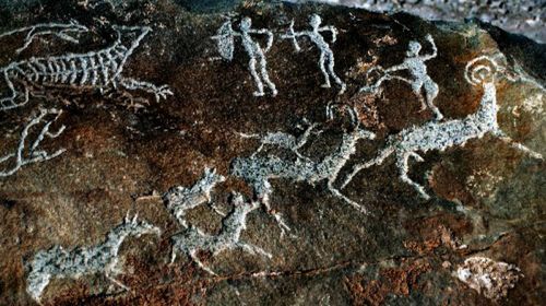 巖畫是一種石刻文化,人類祖先以石器作為工具,用粗獷、古樸、自然的方法--石刻,來描繪、記錄他們的生產方式和生活內容,它是人類社會的早期文化現象,賀蘭山巖畫是史前文明的搖籃。