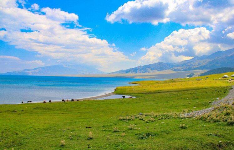 早餐后乘車赴花城—伊寧,途中游覽高山湖泊【賽里木湖】(含環湖車,游覽時間約40分鐘) 湖面海拔2073km,是新疆海拔高、面積大的高山湖湖水浩瀚無垠、湖濱草地,綠高盈尺,途中車觀【果子溝】,素有伊寧第一景之稱,風光峻奇,山花爛漫,途中欣賞因其浪漫的色彩和芬芳的花穗,素有“芳香藥草之后”美譽的【薰衣草王國】,晚抵清水河入住酒店。