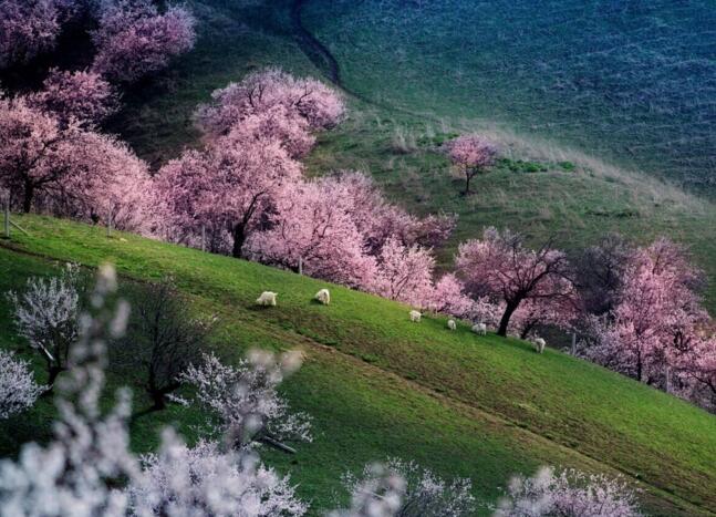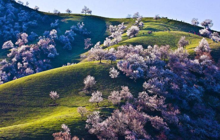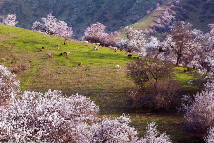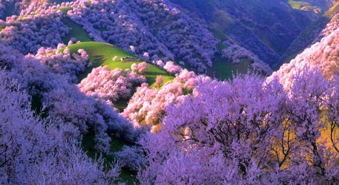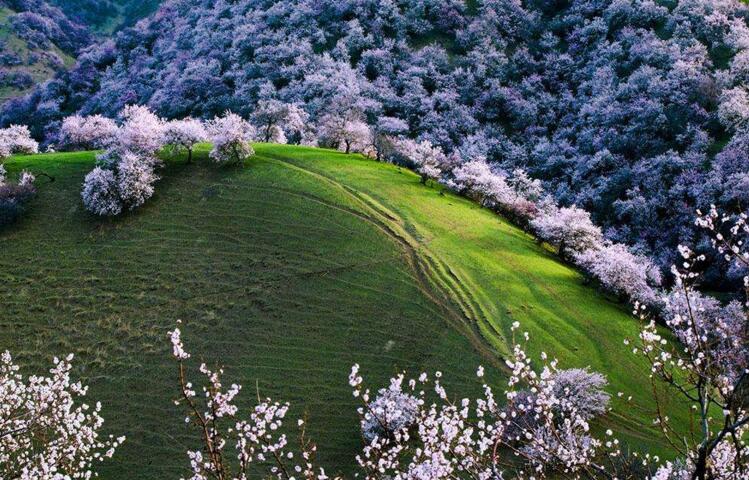 早餐后乘車前往參觀【吐爾根杏花溝】。(賞花時間根據當地的氣候和天氣條件決定,敬請諒解)每年四月份起,伊犁河谷開始進入一個美麗浪漫的季節,山上、草原上的果花、草花次第盛開,美不勝收!最先盛開的就是野杏花。那個季節野杏花綿延十幾公里,粉紅的、雪白的杏花把一個個山頭妝扮起來,牛羊似珍珠灑落在花林間、草坡上。最震撼是這種自然、原生態的壯美,一個花海的世界、一個迷人的仙境!抵達新源用晚餐,晚餐后入住酒店。