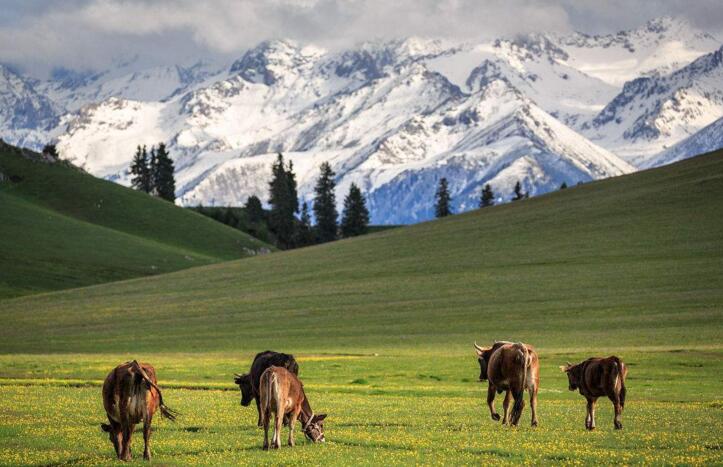 早餐后,前往特克斯。新疆伊犁谷地西的特克斯,位于昭蘇縣境內,是新疆最美的草原,這里的哈薩克族、柯爾克孜族風情獨特,山清水秀,人文濃郁。特克斯縣縣城是中國唯一的【八卦城】,建筑風格獨特,后游覽【喀拉峻草原】位于特克斯縣南喀拉峻山,距縣城直線距離約30公里,有簡易公路相通。海拔1600~2800,喀拉峻系哈薩克語,意為"黑色莽原"??菰L景獨特,草豐林茂,主要指闊克蘇河以東,喀甫薩郎河以南,以喀拉峻山為主體,南接瓊庫什臺,包括瓊庫什臺,克什庫什臺和庫爾代峽谷,面積約759平方公里??菰堑湫偷纳降夭莸轭愋筒菰?,喀拉峻草原地勢起伏和緩,視野開闊,草原5~9月碧草茵茵,盛夏之際雨水豐富、日照充足,各種野花恰似點點繁星開遍山野。夏季來到喀拉峻草原,如同步入花的海洋,暑氣頓消。晚住昭蘇是天馬——伊犁馬的故鄉。