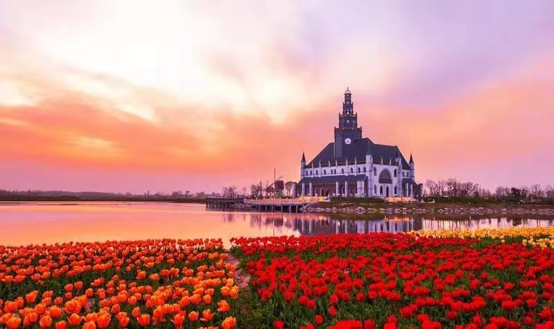 下午到達【鹽城】大豐,這個月是荷蘭花海郁金香節,滿園的郁金香爭奇斗艷,各色各樣,花海面積達1.7萬畝,以種郁金香為主,僅郁金香的數量就達到100多種,是中國最大的郁金香種植基地華東地區最大的婚紗攝影基地;