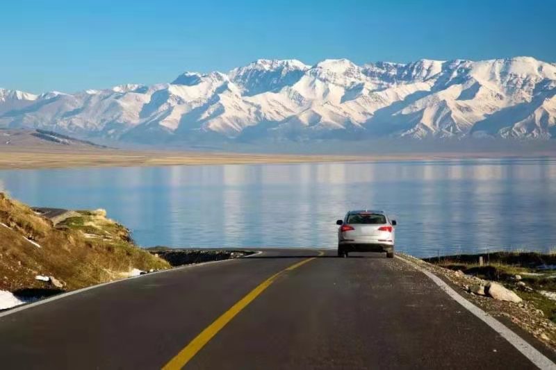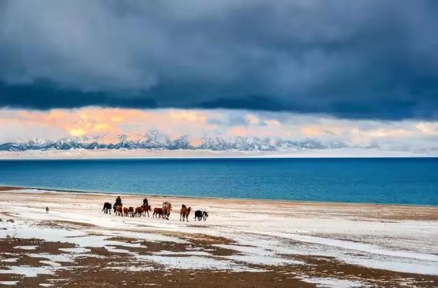途中午餐,下午到達賽里木湖,這個季節(jié)的賽里木湖岸邊還沒有一望無際的野花,但是有剛剛消融的冰雪,運氣好的話還能拍到藍冰(和貝加爾湖的藍冰一樣漂亮)。