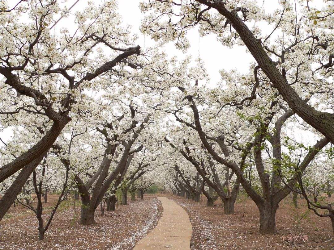 【陽信萬畝梨園】每年的4月初,陽信萬畝梨園里的梨花都會達到全盛狀態,屆時,千畝梨花將如約匯成雪白花海,繁花似錦,美景迎客;萬物復蘇,春意融融,百花爭先怒放,唯獨這梨花最惹人憐愛;唐代詩人白居易留下“玉容寂寞淚闌干,梨花一枝春帶雨”的絕句,用梨花帶雨來形容面貌姣好的女子哭泣的樣子;北宋詞人蘇東坡寫道“梨花淡白柳深青,柳絮飛時花滿城 ;用來描寫清明時節,草薰風暖,梨花如雪,已是暮春,繁華過眼即空的場景,生出“人生能有幾度清明”的感慨;梨樹先開花,后長葉,梨花呈五瓣形,潔白淡雅;花蕊嫩黃,幽香撲鼻;一枝枝、一樹樹,你擁我擠,綴滿枝頭;在這梨花盛開的時節,在這美麗動人的四月,站在觀花臺上,放眼四顧,一片梨花的海洋;此時,你仿佛置身于天宮仙境;近看,那梨花如漫天大雪紛飛;遠望,似片片白云飄游,令人飄飄欲仙,如癡如醉。