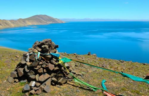 【瑪旁雍措】是世界上多個宗教認定的圣湖,每年印度、尼泊爾和西藏的香客紛到此朝圣沐浴以求功德?;鶠跛屡赃叺囊粋€小山坡是拍攝瑪旁雍措的絕佳位置,湖水水色深藍,依舊清澈明凈,狂風吹過,經幡隨風蕩漾;而遠處的神山就安靜的沐浴在夕陽中,夜宿塔爾欽。