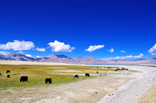 早餐后從【拉薩】出發沿雅魯藏布江前行,經過曲水大橋,翻越海拔4990米的崗巴拉山口后,汽車在蜿蜒的山谷中登上山頂,我們眼前便映入了【羊卓雍措】,車行約2小時后眼球里驀然出現一面晶瑩奇幻的蔚藍色寶鏡,相信我,你一定會驚嘆歡呼。