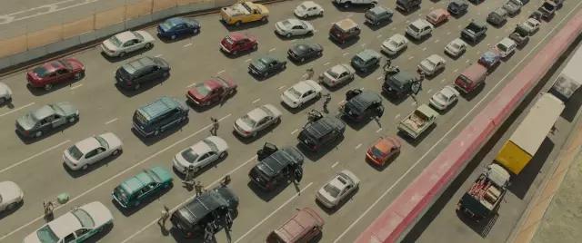 AC:電影前20分鐘是一段非常有沖擊力的片段,Emily Blunt飾演的角色和她的隊伍開進華雷斯(邊境城市)。這個片段里混合航拍鏡頭和在車上的鏡頭,展現他們越過邊境