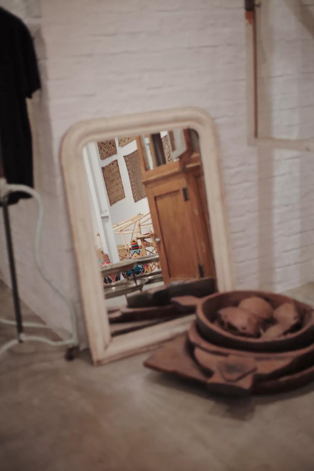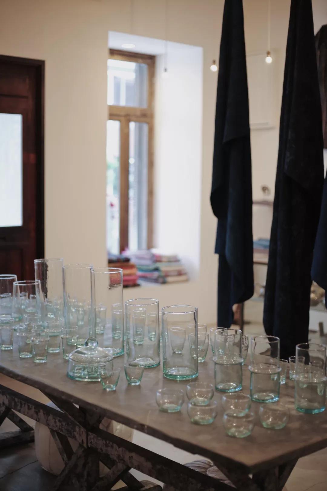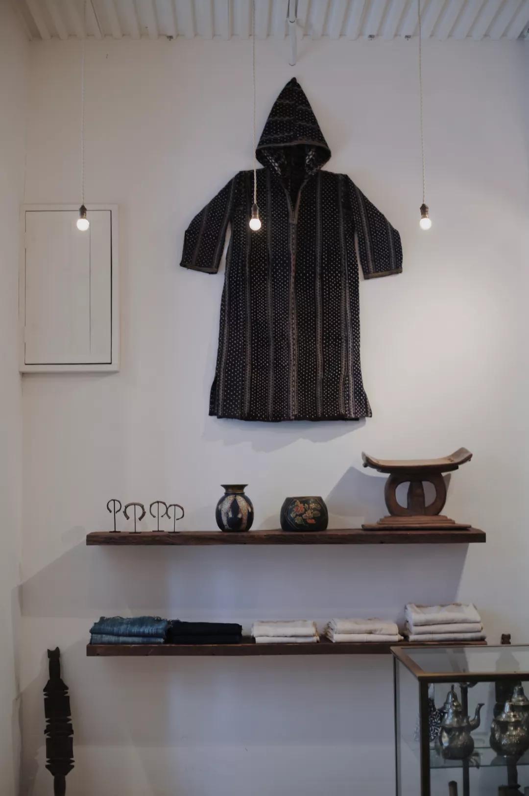 空間里迷人的老舊味道實在太吸引人,木桌上一水兒的玻璃器具,想著買一把花束插在里頭,應該會很好看。摩洛哥的杯子,剛果的掛毯,中非的竹籃,印度的木工藝,充滿異國情調的手工制品,就這樣看似隨意地擱置著,每一件都似會呼吸般充滿靈氣。