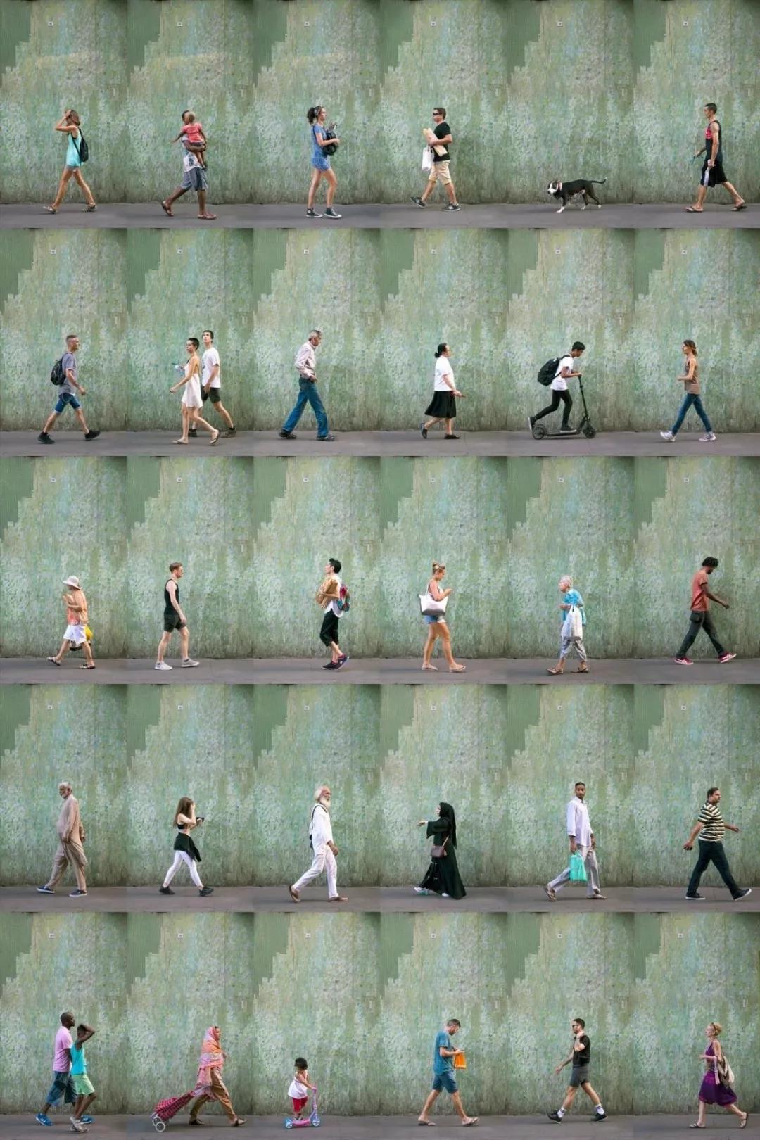“我在城市里四處游走,有時(shí)找個(gè)地方坐上幾個(gè)小時(shí),然后在不被注意的情況下,拍下那些隨意靠墻經(jīng)過(guò)的人。”