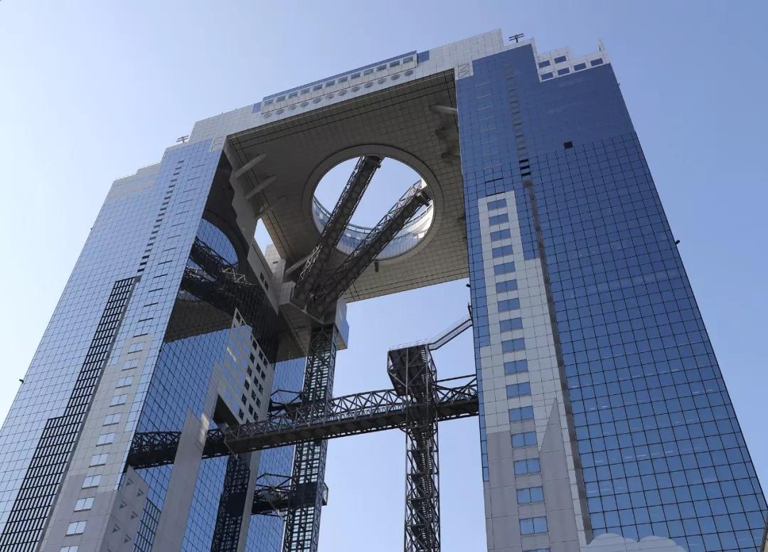 大阪梅田藍天大廈。藍天大廈是大坂府大坂市北區新梅田城的摩天大樓。地上40層樓、地下2層,高度約為173米,1993年3月完工。