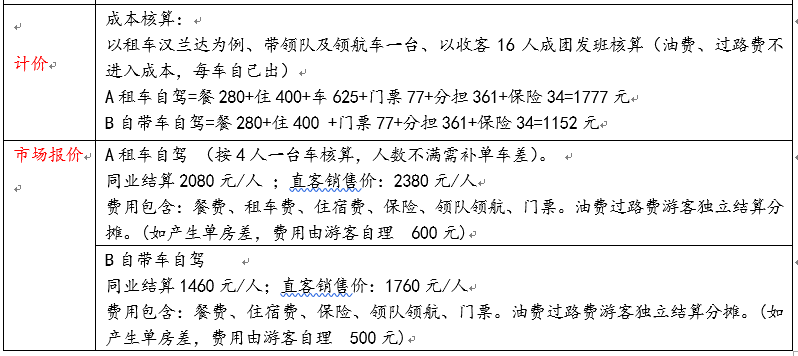 (一)自駕游產(chǎn)品價格構(gòu)成