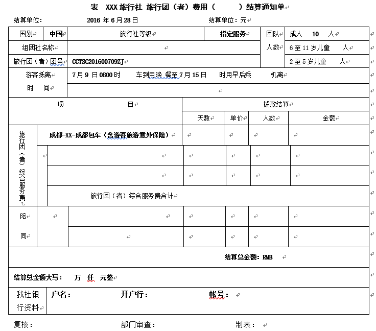 單項委托合同簽訂好之后,組團社就應(yīng)該給團隊或個人發(fā)一個費用結(jié)算通知單,敦促對方把錢劃在賬戶上。