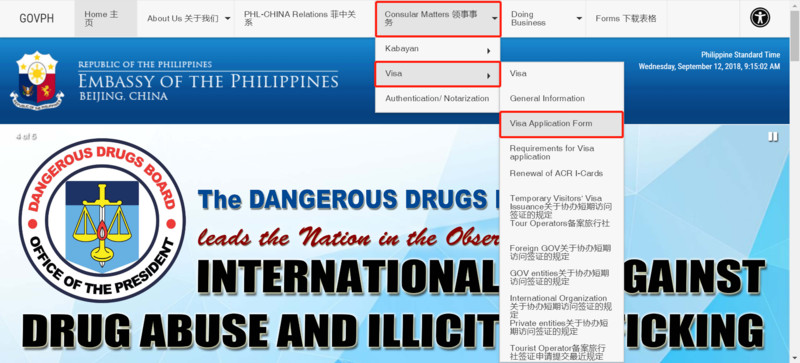 可點擊訪問菲律賓駐華大使館,選擇“領事事務→Visa→Visa Application Form”下載表格。