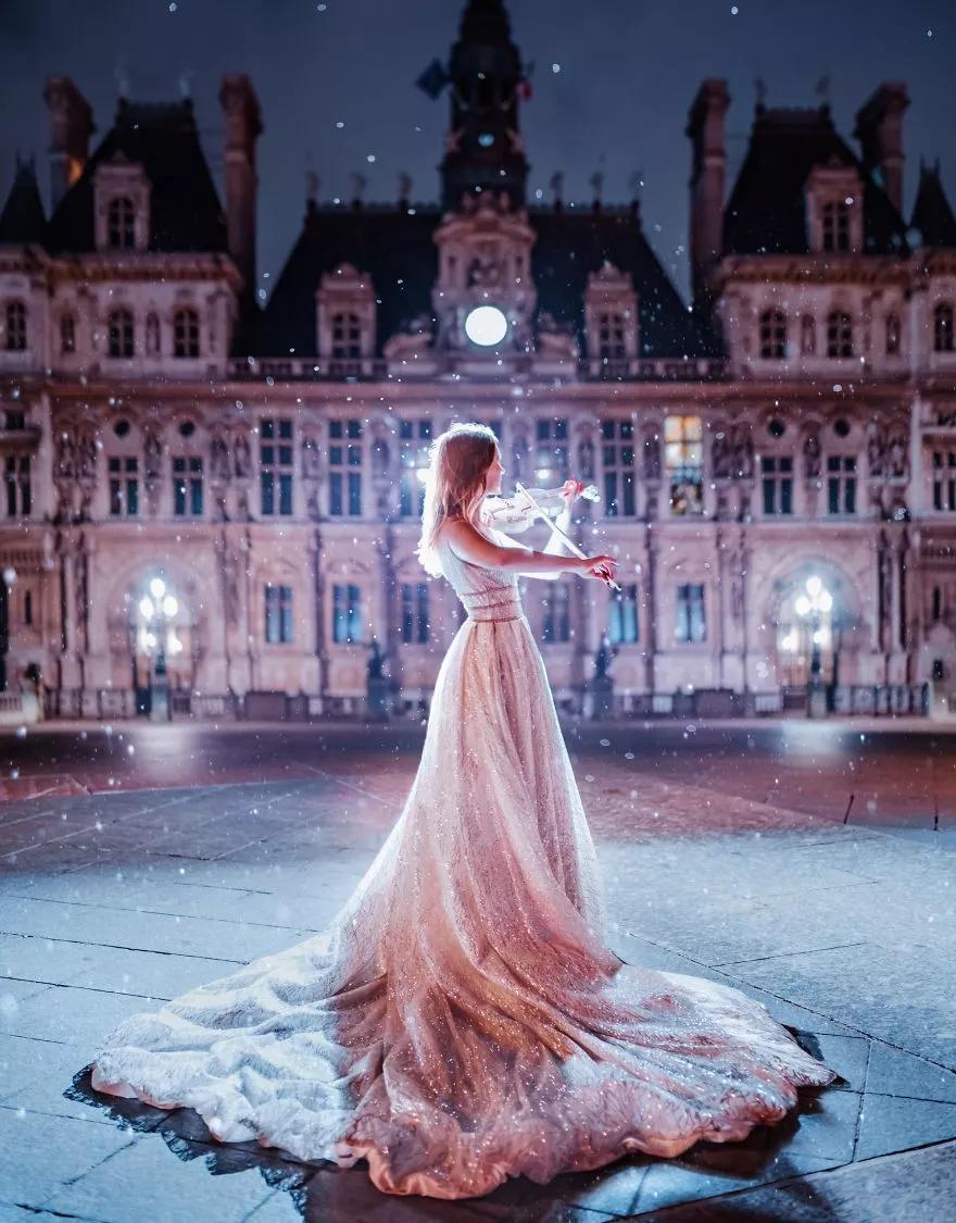 嘗試著打扮并拍攝穿著華麗裙裾、