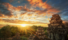 傍晚時分前往吳哥【巴肯山】賞落日,登上巴肯山頂,遠眺宏偉的吳哥古城,趁著落日余暉,沐浴在金色陽光中享受著一場名叫「夕陽」的戲。