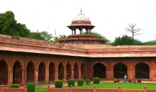 早餐后前往參觀世界建筑之奇跡【泰姬陵】(周五不開)(參觀時間約120分鐘)是一座白色大理石建成的巨大陵墓清真寺,是莫臥兒皇帝沙賈汗為紀念他心愛的妃子于1631年至1653年在阿格拉而建的,位于今印度距新德里200多公里外的北方邦的阿格拉(Agra)城內,亞穆納河右側,由殿堂、鐘樓、尖塔、水池等構成,全部用純白色大理石建筑,用玻璃、瑪瑙鑲嵌,具有極高的藝術價值;