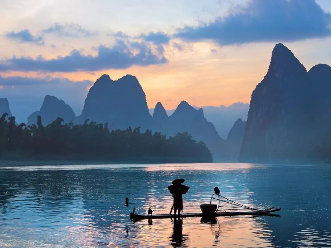 20元人民幣背景處5A漓江——興坪漁村,乘船興坪漁村往返,興坪是漓江風景的匯景處,更是20元人民幣背景處(因與水流速度有關,游覽時間約90分鐘,興坪—漁村—興坪,乘船往返);