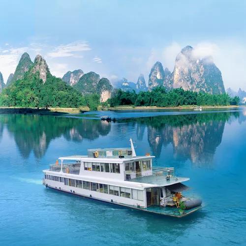 早餐后乘車前往桂林山水的靈魂——漓江(被美國CNN評選為全球最美河流之一),乘坐三星級游船漫游5A【大漓江】(磨盤山—陽朔,游覽時間不少于180分鐘,中餐為船餐,含陽朔電瓶車),沿途可欣賞到楊堤飛瀑、浪石煙雨、九馬畫山、黃布倒影、興坪佳境五大美景高潮(溫馨提示:如遇下大雨、漲水等不可抗力因素造成游船無法游覽,則以實際情況操作為準;