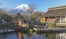 【忍野八海】(約30分鐘) 被譽為“日本九寨溝”,是忍野地區指定的國家自然風景區,1985年入選“日本名水百選”。忍野八海是日本山梨縣山中湖和河口湖之間忍野村的涌泉群,由富士山融化的雪水經過地層過濾而成。因為錯落有致地散布著八個清泉,故得名“忍野八海”,這里也是觀看和拍攝富士山的好地方。泉水平均水溫約13℃,水質清冽甘甜,可以飲用,也可以在附件的土特產店鋪里買瓶裝的帶走;
