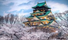 【大阪城公園】(約40分鐘)(不上天守閣)--日本三大城堡之一「大阪城」,豐臣秀吉于公元1583年在石山本愿寺遺址上初建,至今已有400多年歷史,為當時日本第一名城,也是日本前所未有的最大城堡(不登城),此千年古堡系日本古代著名大將軍—豐臣秀吉所建,為日本三大城堡之一,約4300棵櫻樹圍繞著大阪城一齊開放的情景確是一副美麗的風景畫;