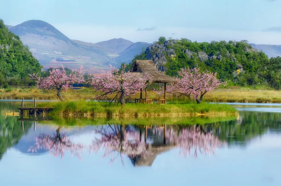 吃完早餐之后我們出發前往熱播劇《三生三世十里桃花》的實景拍攝地【菜花箐村】看最美的“小桂林”景致,三生緣起,靜待花期;灼灼桃夭、十里芳華。漫山遍野的“桃花”仙境,這便是上神折顏的避世之處。小橋,孤峰,桃花島…在湖水的倒映下美得特別不真實,恍若人間仙境,置身其中仿佛人在畫中游。