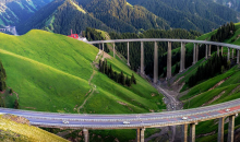 果子溝大橋在設計施工中秉承"以最小限度破壞、最大限度的恢復"的環(huán)保理念,在克服地質災害頻發(fā)影響通行的同時,邊施工邊進行環(huán)保恢復工作。建成的大橋橋身與果子溝的美景渾然一體,將為果子溝國家級風景區(qū)再添一道美麗風景線。