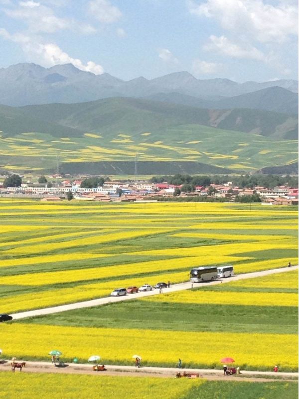 1、青海祁連縣,這里有美麗的色彩麗的丹霞地貌,美麗色塊的油菜花,青稞田場景,天高云闊的小高原場景;