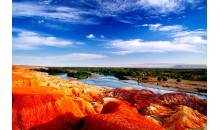 【五彩灘景區】  (含門票, 游覽時間約 1 小時)  位于新疆北端阿勒泰地區布爾津縣境內, 海拔 480 米 , 一河兩岸,兩岸景不同,是國家 4A 級景區,其地貌特殊,長期干燥地帶,屬于典型的彩色丘陵(或彩丘地 貌) , 被稱為最美雅丹, 電影[暴走吧 女人]取景地。