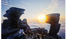 后乘車約3小時(shí)抵達(dá)銅仁國(guó)家AAAAA級(jí)風(fēng)景區(qū)【梵凈山】(不含必坐環(huán)保車20元/人+不含必坐住返索道140元/人+保險(xiǎn)10元/人)(游玩時(shí)間:不少于3小時(shí))。是中國(guó)第五大佛教名山,彌勒菩薩的道場(chǎng),也是2018年新晉的世界自然遺產(chǎn)保護(hù)地。567平方千米內(nèi),分布著800余種動(dòng)物,還有2000余種植物,是人類名副其實(shí)的寶藏。 梵凈山腰時(shí)常被云霧繚繞,流云隨風(fēng)翻騰,時(shí)而氣吞山河,時(shí)而嬌媚百態(tài),乘坐索道一路向上,穿破云海,便臨近山頂。向上攀爬少頃,蘑菇石便立于眼前,猶如天上飛來(lái)之物,傲然矗立了億萬(wàn)年。雨后初晴,在與太陽(yáng)相對(duì)的云霧里會(huì)有佛光顯現(xiàn),若能有幸目睹,便能帶來(lái)一整年的好運(yùn)。再向前,紅云金頂拔地而起,如玉筍插天,直指蒼穹。紅云金頂山峰的上半部分,被金刀峽一分為二,分成兩座小山頭,由天橋相連,兩邊各有一個(gè)寺廟,一邊供奉著現(xiàn)在佛釋迦摩尼,一邊供奉著未來(lái)佛彌勒,登臨梵天凈土接受兩位佛祖的賜福。