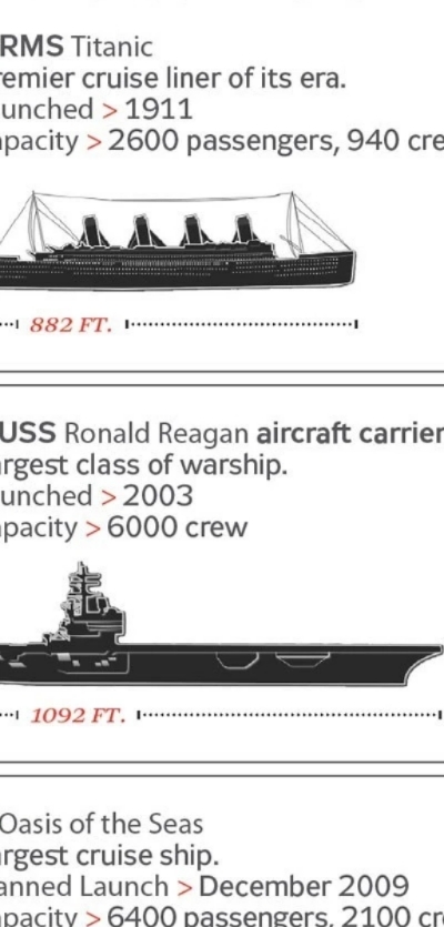 目前世界上最大的郵輪(客船),綠洲系列誕生時,做對比的美國里根號航空母艦,還是泰坦尼克號。