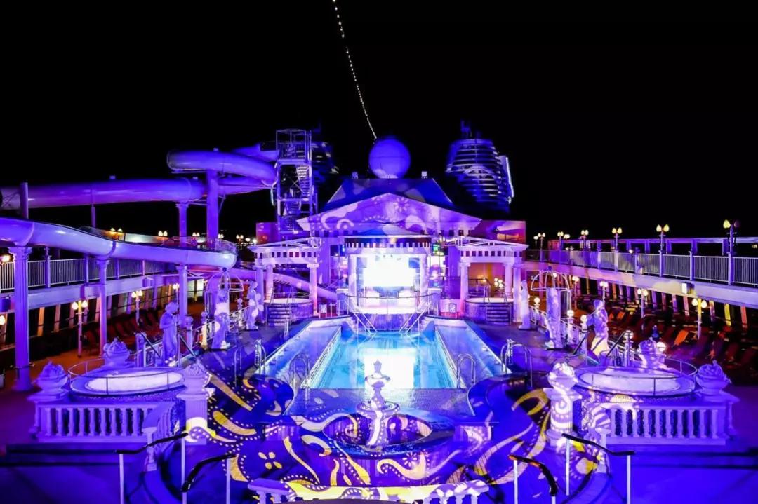 甲板上,有高空飛索表演,有海上煙花匯演,你可以在各式各樣的休閑、娛樂、美食、購物場景中獲得無數(shù)與眾不同的美好體驗,當然,你也可以什么都不體驗,只是吹著海風(fēng)看看世界。