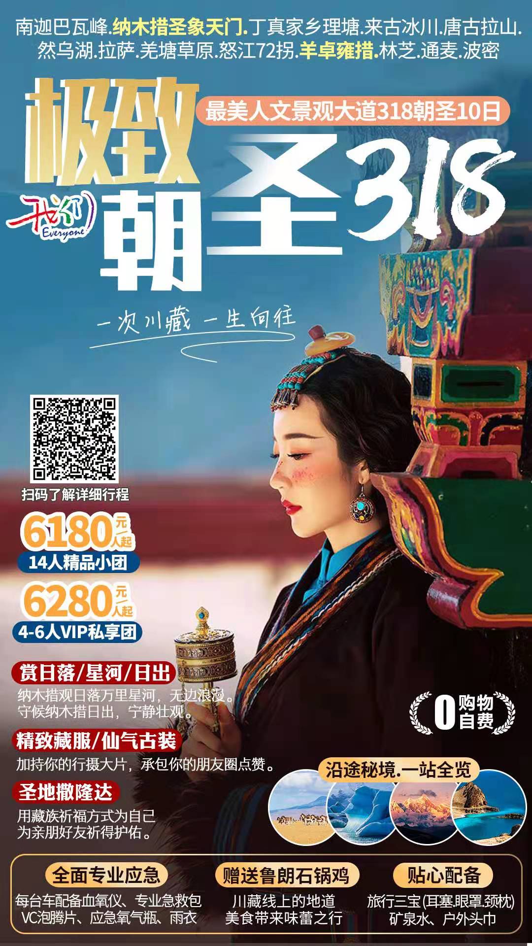 南迦巴瓦.納木措圣象天門(mén).羊卓雍措.丁真家鄉(xiāng)理塘.來(lái)古冰川.然烏湖.羌塘草原.怒江72拐 318朝圣9晚10天
