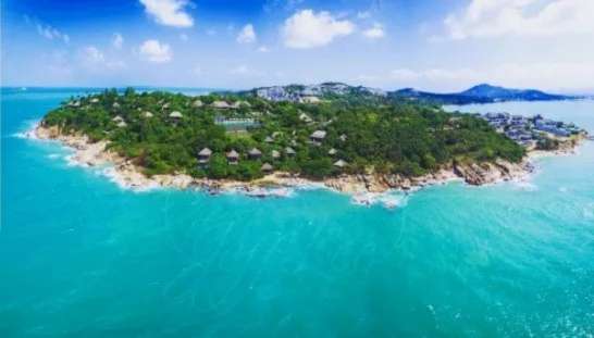 和隱逸的閣遙島比起來,蘇梅島的六善酒店更加前衛。它獨占了一塊低坡岬地,酒店的房間都是上下兩層的 villa,每棟 villa 都與植被融為一體,每一眼都是“面朝大海,春暖花開”。