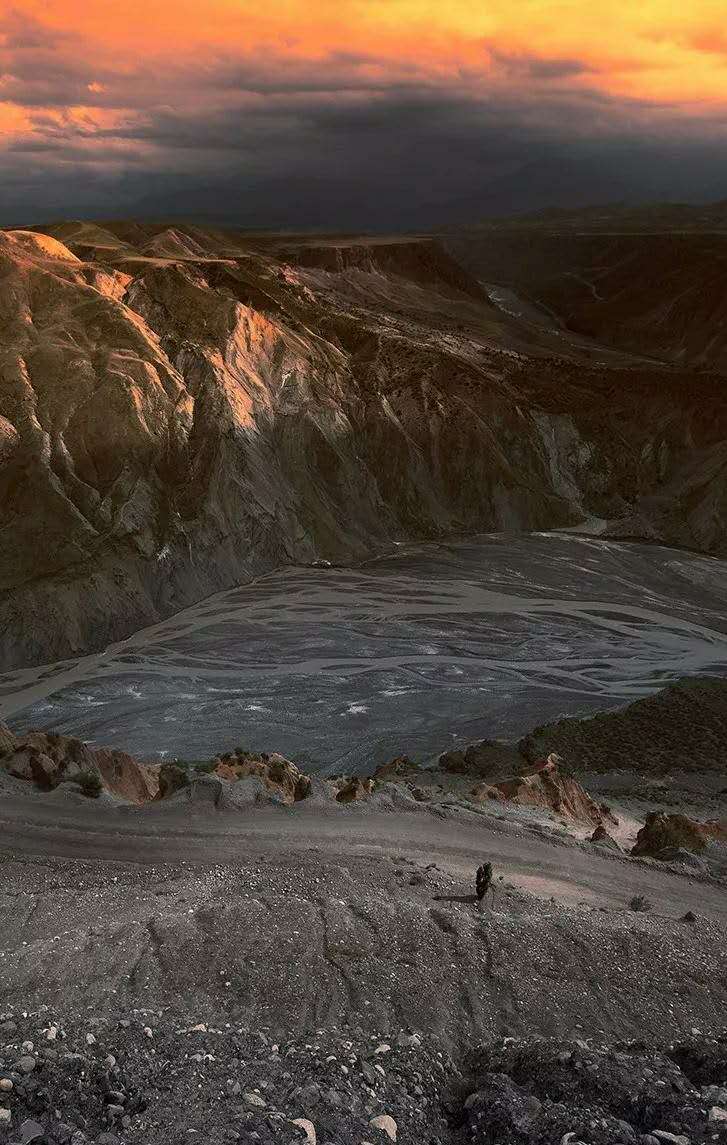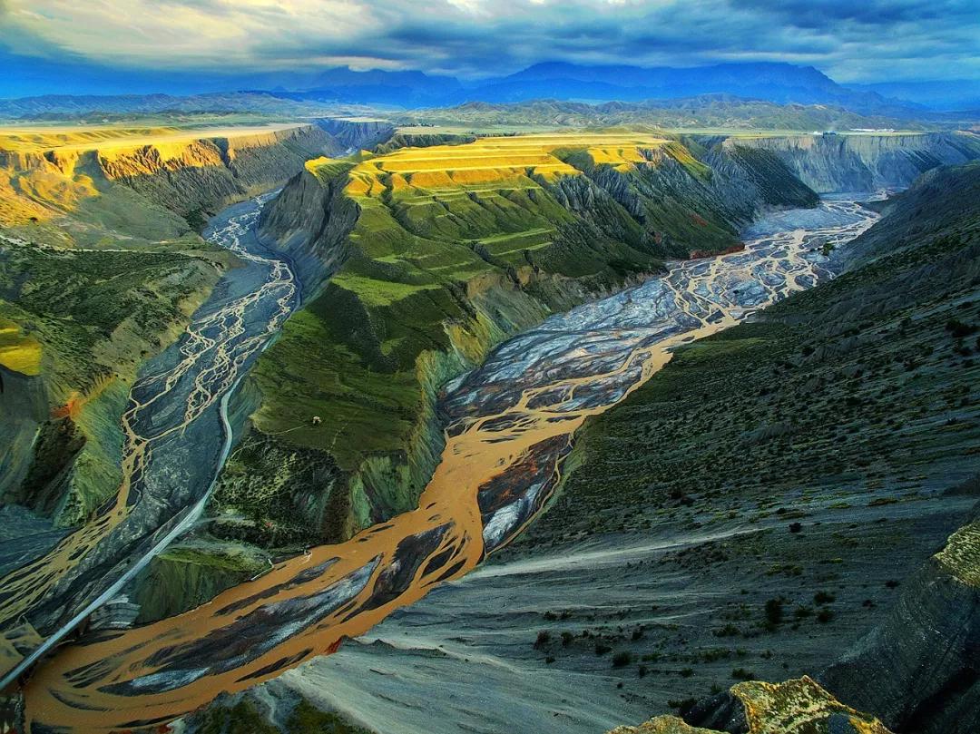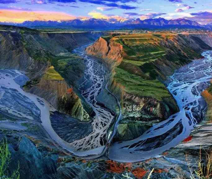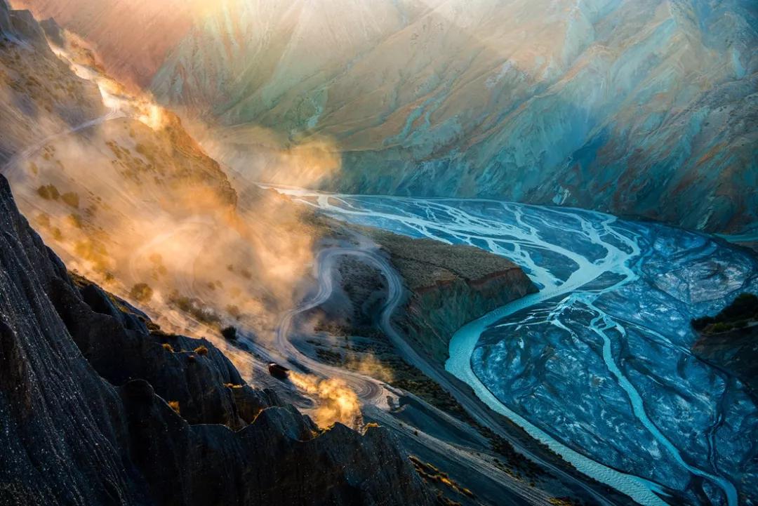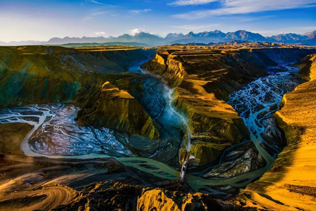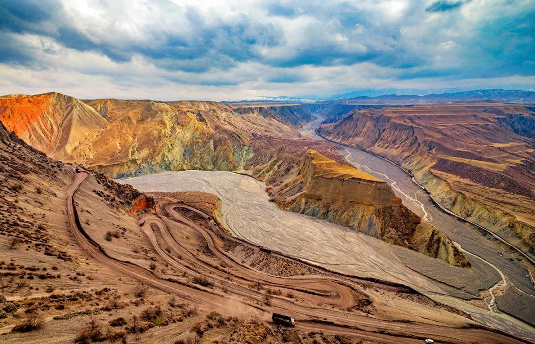 鮮為人知的安集海峽谷,其實有著令人目眩、剛柔并濟的壯美景觀:峽谷兩側是從上到下依次排開的河流階地,宛如波濤洶涌的海浪一樣撲面而來,充分顯示了峽谷陽剛的一面。而河谷里蜿蜒流淌的辮狀河流,千轉百回,在纏綿低語中將峽谷柔情的一面展露無遺。這條峽谷還以豐富的色彩而令人感到嘆為觀止。
