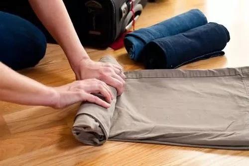 3.將衣服卷起來打包,這樣能節省更多的空間。