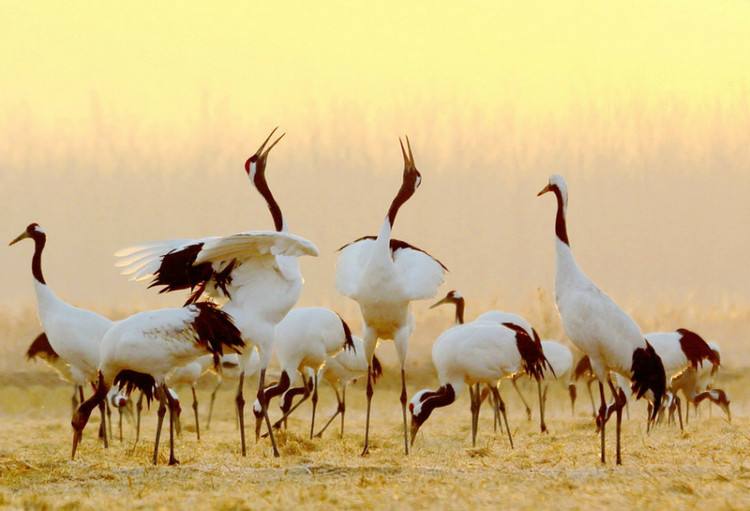 這群珍惜的丹頂鶴,在保護區翩翩起舞