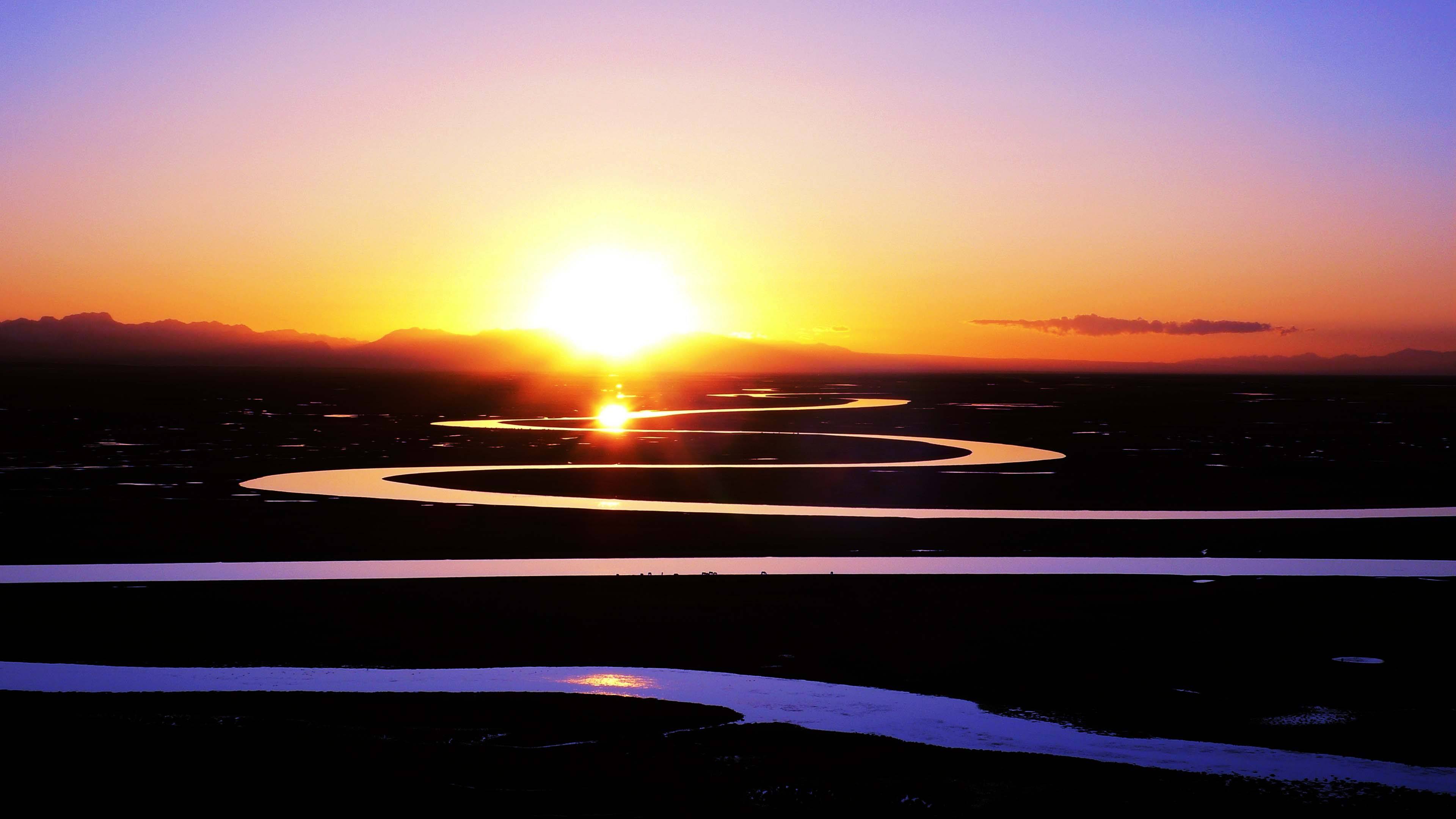 在綠色的平原上,像一條條玉帶