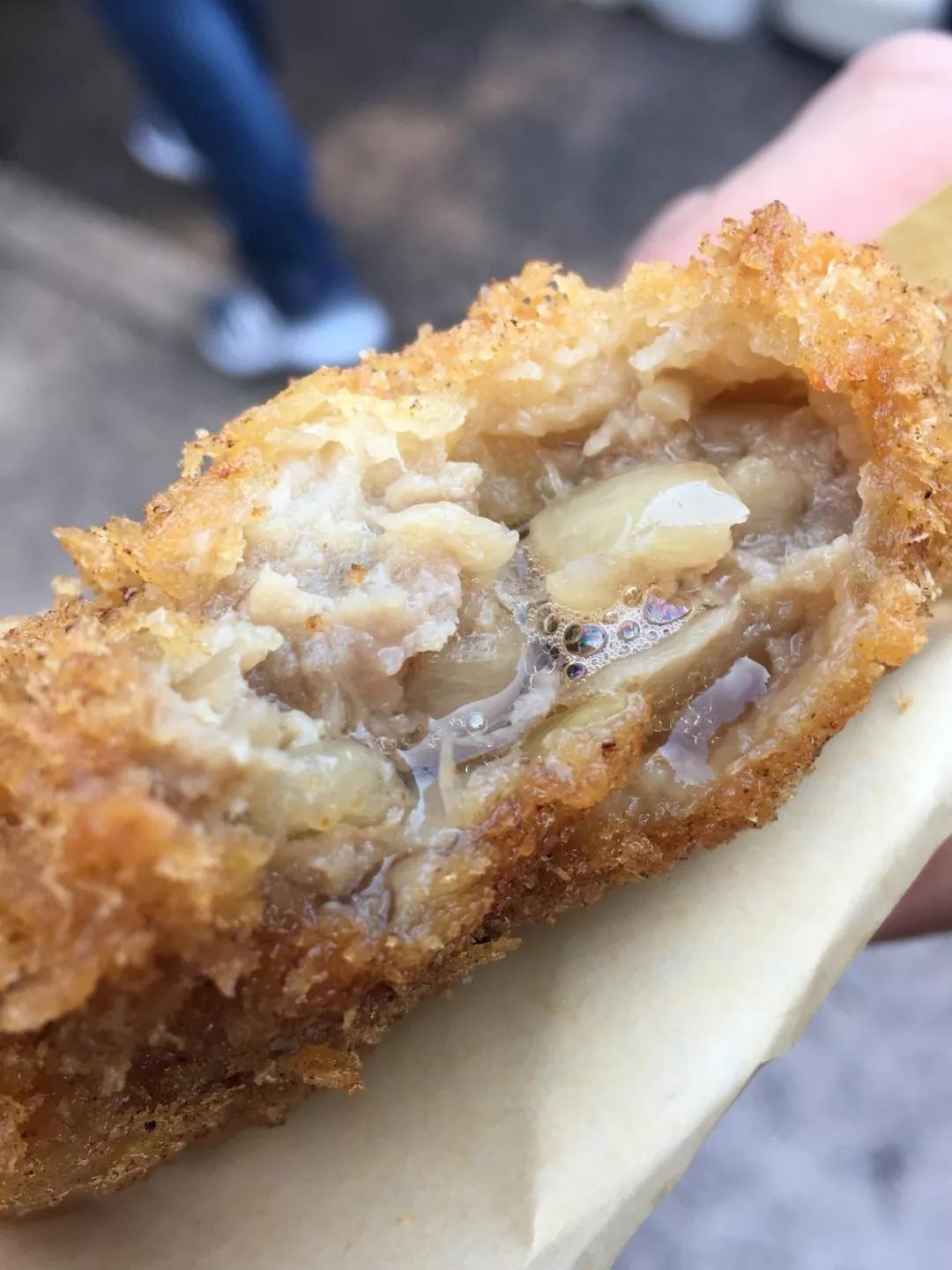 在淺草,各種便宜又美味的日式小吃自然是不容錯過,這家淺草炸肉餅就非常值得一試,口感外脆里嫩、內(nèi)餡使用了神奈川縣產(chǎn)的高座豬與牛肉。先能感受到炸到酥脆咔嚓咔嚓的外殼,然后便是里邊又香又嫩又多汁的牛肉了。