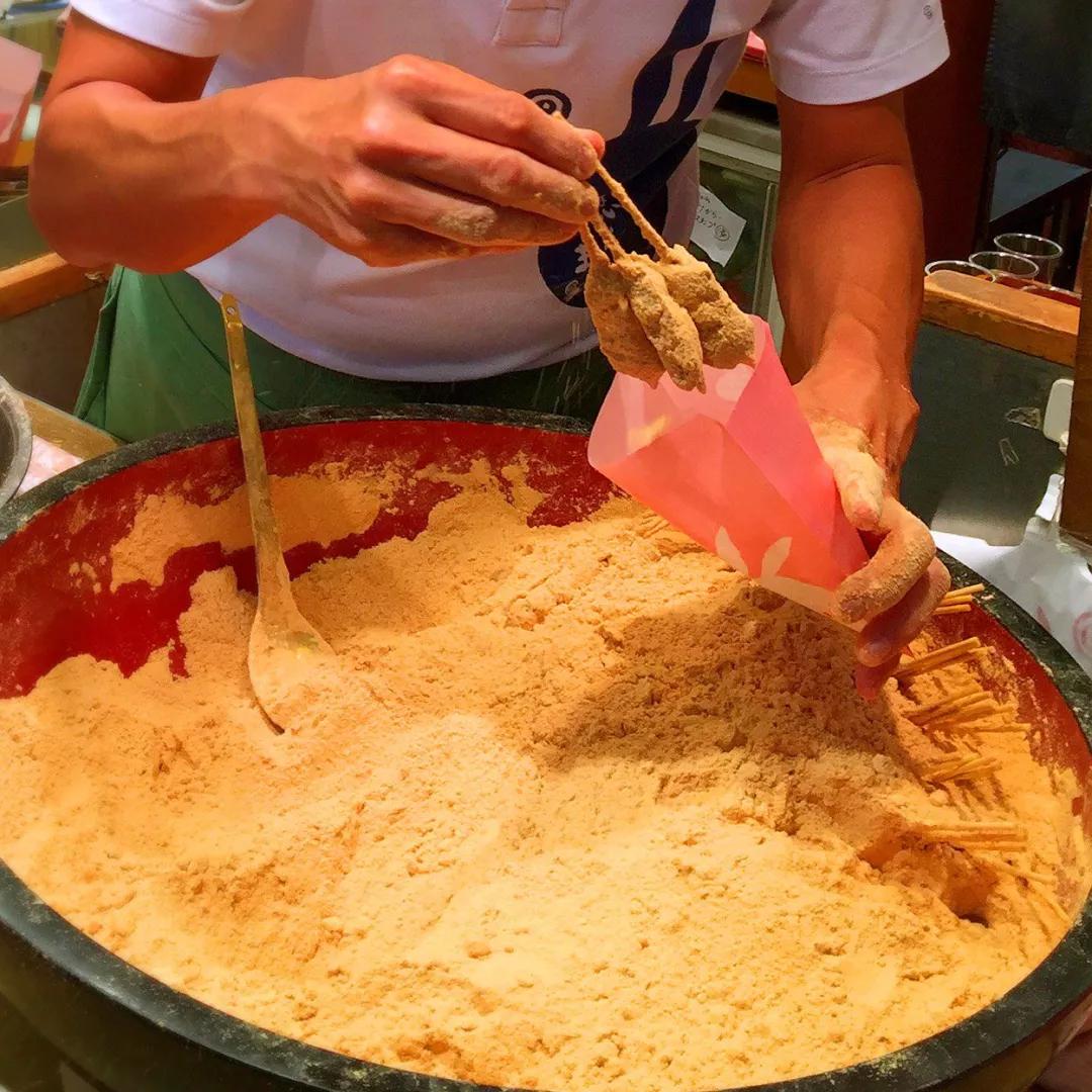 這家店每天營業(yè)時都是大排長龍,剛煮好的團(tuán)子軟軟的 富有彈性的團(tuán)子沾上香甜的黃粉,是不可錯過的淺草美食之一。再配上也一杯冰抹茶最合適不過了!店里還提供夏季抹茶和冬季甘酒等飲品,非常值得一嘗。