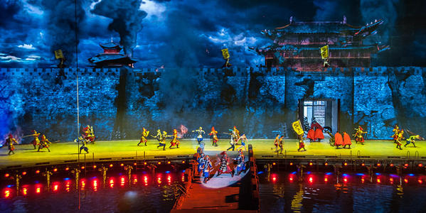 觀賞世界首家頂級環(huán)繞室內(nèi)實景舞臺秀,進入三萬平方超大演藝劇場,乘坐會跑的觀眾看臺,打破了五千年來單一的舞臺觀演模式,欣賞真山真水演出;
