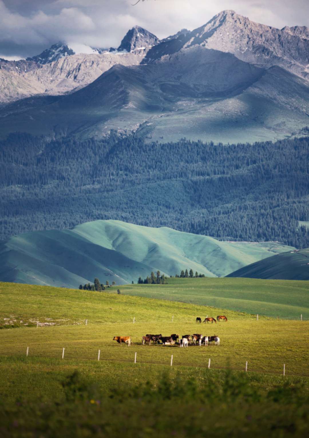 區(qū)內(nèi)集森林、草原、雪山、冰川、峽谷、河流、湖泊等自然景觀為一體,集中代表了新疆天山自然的美學(xué)價值。