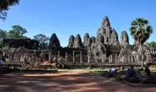巴戎廟 位于柬埔寨暹粒,吳哥城內最為出名的要數(shù)巴戎廟中的佛塔了,巴戎廟位于吳哥城的中心位置,巴戎廟是由一組共49座小寶塔圍繞中央尖塔構成的建筑群,這些塔在佛語里又被稱做浮屠,每一座塔的四面都雕刻著巨大的佛面,也正因為如此,這些塔又被稱作佛面塔,上面的佛被稱為四面佛。