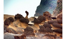野柳風(fēng)景區(qū)位于臺灣省基隆市西北方約15公里處的基金公路,是一突出海面的岬角(大屯山系),遠望如一只海龜蹣跚離岸,昂首拱背而游,因此也有人稱之為野柳龜。受造山運動的影響,深埋海底的沉積巖上升至海面,產(chǎn)生了附近海岸的單面山、海蝕崖、海蝕洞等地形,海蝕、風(fēng)蝕等在不同硬度的巖層上作用,形成蜂窩巖、豆腐巖、蕈狀巖、姜狀巖,風(fēng)化窗等世界級的巖層景觀。