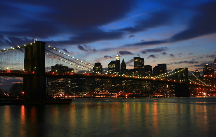 布魯克林大橋是1883年5月24日下午二時啟用通行的(維多利亞女皇誕辰日),開幕時,每輛汽車收費美金五元。如今,每天從橋上經(jīng)過的車輛約十四萬輛,單車千多架,行人兩千名。日落的時候,從布魯克林沿著木道步行,可以觀賞曼哈頓的高層建筑及美麗的街景,可說是紐約旅游的最亮點。每年7月4號美國獨立紀(jì)念日在此放煙火。