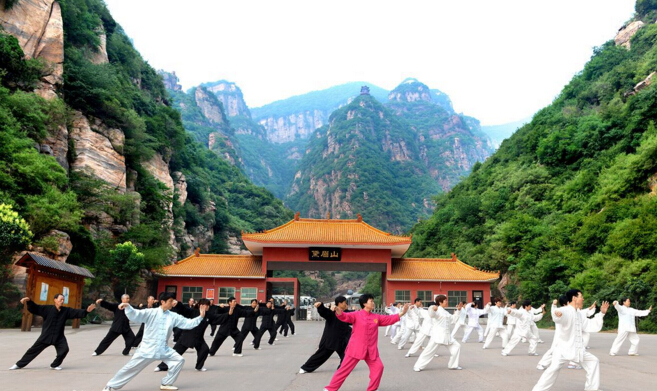 它四壁如削,奇崖怪石,千姿百態;或如危塔,或如城闕,或如樓閣,或成壇臺,連綿不斷,鬼斧神工,有相對高度差別不大的16座山峰,依次為梳妝臺、南天門、造鐘峰、望鄉峰、月老峰、抱犢峰、鳳凰嶺、燕子峰、金壇峰、睡仙峰、息壤峰、千佛山、萬佛山、大獨立峰、小獨立峰、將軍寨,多呈麗姿、峭壁萬仞,峰上峭石林立,攀路艱難,林繁藤茂,山頂卻開闊平坦,林木茂密,花卉叢生,系一天然草原,頗具歐洲風格。