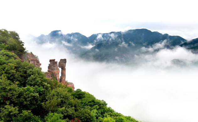 群山伏地、白云繚繞,特殊的氣候條件,經常使黛眉山頂萬壑生嵐,煙霧生騰聚成云海,猶如洪破涌起,巨浪翻滾,深邃莫測,浩瀚無際,黛眉諸峰在云海出沒,飄忽不定,猶如仙女瓊閣,海市蜃樓,每當鳳凰嶺浮現云頭之際,像大鵬展翅,翱翔在茫茫滄海上空,令人驚嘆不已,黛眉山黃河岸邊之仙山,登此山如身在畫中行,神在仙境游。
