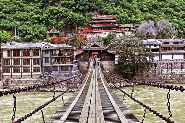 發展歷史:瀘定橋兩岸的橋頭古堡為傳統木結構古建筑,瀘定橋俯瞰為中國獨有。該橋始建于清康熙44年(1705年),建成于康熙45年(1706年)。康熙御筆題寫"瀘定橋",并立御碑于橋頭,兩岸橋頭堡為木結構古建筑,風貌獨特系國內獨有。中國工農紅軍在長征途中“飛奪瀘定橋”,使之成為中國共產黨重要的歷史紀念地。